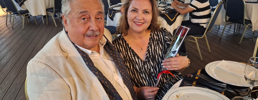 La música fue el alma de la noche bajo la interpretación del cantante Guillermo Carvel, acompañado por los músicos Francisco “Pancho” Aranda y su hijo, Francisco Aranda, quienes ofrecieron un cancionero romántico de clásicos inolvidables que invitaron al abrazo y al baile. La calidad artística y la sensibilidad interpretativa del trío marcaron el ritmo de una velada íntima y elegante.